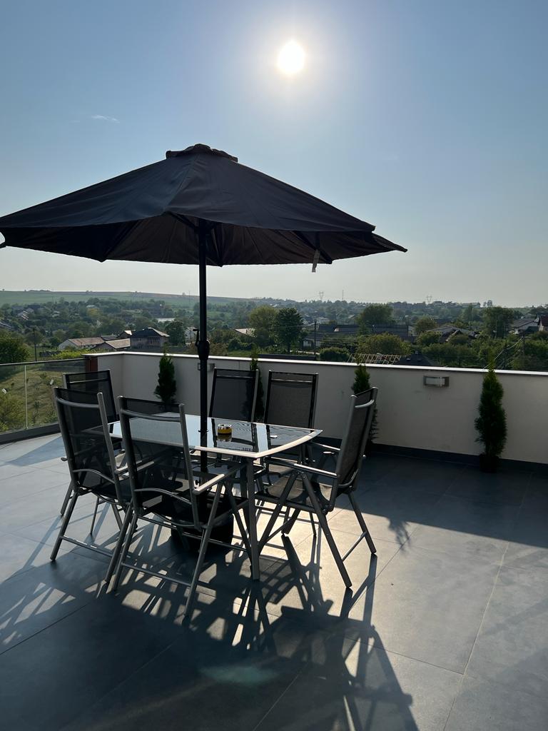 Bucura-te de un mic dejun, pranz sau chiar cina pe terasa de 40mp ce ofera spatiul necesar pentru minim 4 persoane.